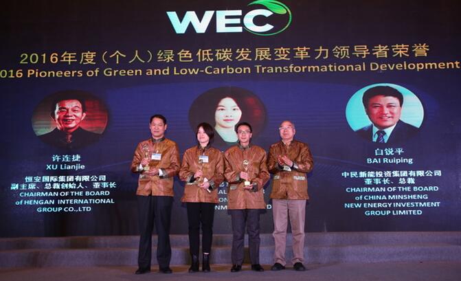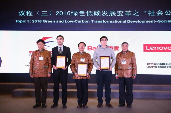 2016綠色低碳發展變革之 “中國綠效企業——綠色責任”由中平易近新能投資集團無限公司和華潤三九醫藥股份無限公司摘取。